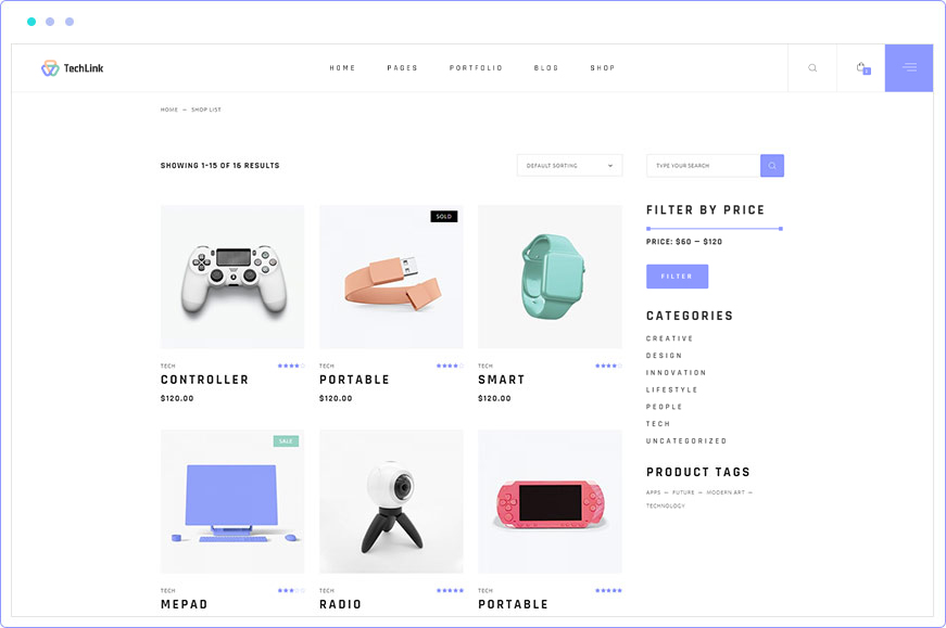 Alongside full compatibility with the WooCommerce plugin for eCommerce, TechLink comes with a set of simply stunning as well as practical shop page templates.